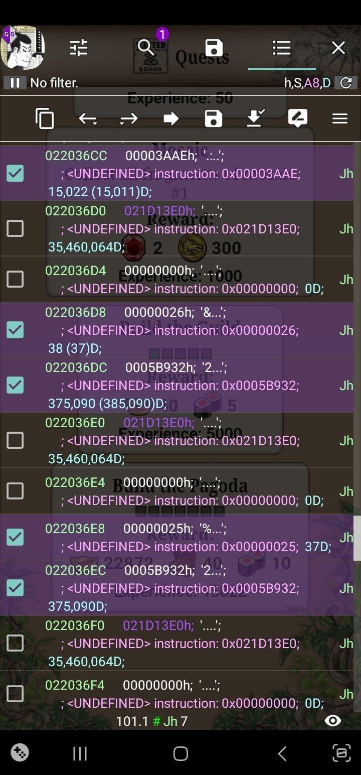 I'm trying to cheat in more resources in Nonograms Katana. I've tried various android emulators, such as Mumu, Memu, Nox, Bluestack. I've also tried Cheat Engine and GameGuardian. So far only the combination of GameGuardian and Mumu Player actually resulted in positive search results, for example gold in the shop. However, when I edit the values, nothing happens. I've tried to also search for a pointer, no luck. I did find an older post stating that you can adjust the costs of upgrades, which is fine as well, but I have had no luck replicating it and also there is no explanation on how it was done. need help in nonograms katana (#502ndgiq) Did anyone manage to actually cheat in this game recently? If so, how did you do it?