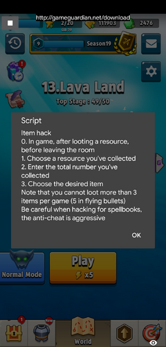 This is loosely based on 5G_Controller Archero's script v1.0.3. I merely tweaked things to my liking and added the item hack feature (which he added afterwards in his 1.0.4 version).