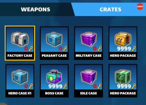 • Crates hack to get 9999 keys for Hero Packages and Boss Case