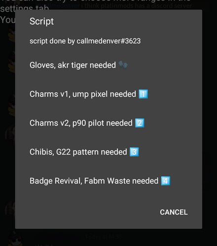 This script allows anyone with gameguardian to get expensive glove skins, charms, badges and chibis for free