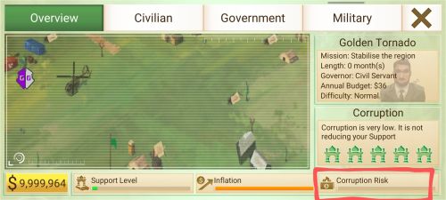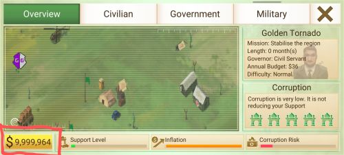 Version 1.16.1 Rebel Inc. with money and corruption remover