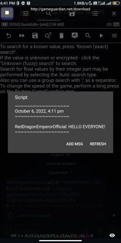 This is a chat room lua script for GameGuardian developed by RED DRAGON EMPEROR Official.