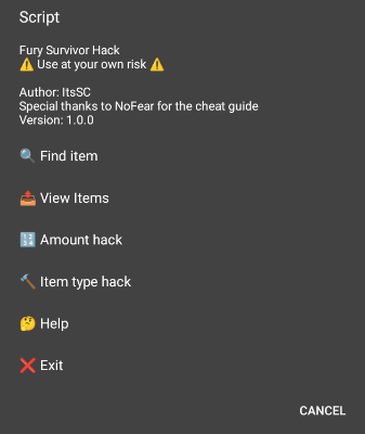 This script is specifically designed to swap item and modify item amount in Fury Survivor: Pixel Z. The script is expected to perform everything laid out in this guide in an automated manner. The following is the steps of using the script: