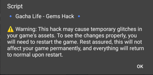 This script will modify in-game gems. This script only works for Gacha Life 1.