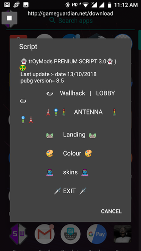 but it works Great although i just use wallhack and color, i just combined 2 scripts into 1. So just use bypass ( Password= username ) as usual and go for 3rd option as u can see (skins) in that use wallhack as per your device & color + it works for play-store & modded Pubg also......