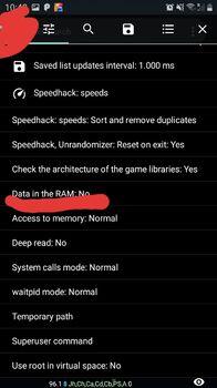 First off) disable safe mode ( battery) as this limits ur ram. second) make sure before you open a game to set "Data to ram" to no ( see picture) this option makes the values that u searched saved on ur phone storage rather than ur ram. Last) close all tabs on ur phone when ur trying to hack games so the only thing what open is, is ur game an GG hope this helps [added 4 minutes later] Btw read this to hack Jurassic world: Jurassic world the game (#8km5xb4d)