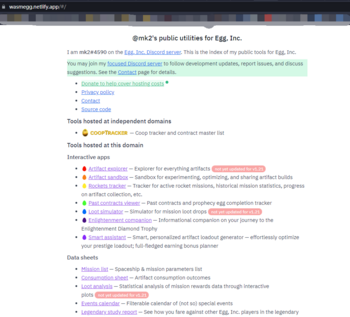 I just found a site called "@mk2's public utilities for Egg, inc." and there's bunch of tools can be used to analyze your game savedata by enter your game ID which can be found in settings.