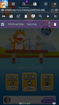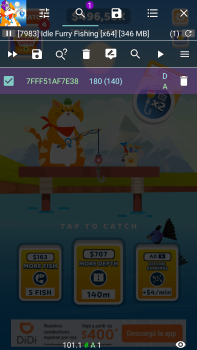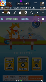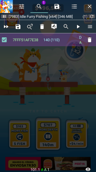 5. Hello, good morning. I have found modified apks of this game, but I wanted to do it myself, but I can't get it. The game in question is Idle Furry Fishing! What happens to me is that I can modify it without any problem, but to buy the meters, I can't afford it. My goal is to reach 10,000 meters, and if I change my money to 2B I can only reach 1,030 meters, so the only option I have left is to change the value of the meters, because with coins (which is what I want) it's impossible. I manage to find the value of the meters (you can see it in the images), but when I modify it, it doesn't change. I leave screenshots showing it.
