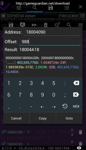 6:38 No converter need. Just simple search "12F;90;68" with selected Dword. First number automatically search as Float because we set it type to "F" - Float. 7:30 You can use offset calculator for faster goto to need values instead of count items in memory editor. In your case offset: 91AC6D20 - 91AC6CEC = 34 (13 items * 4 bytes for each item = 52 bytes in dec = 34 in hex) Just long tap on last founded item (DPS), select offset calculator, input offset 34 and press "goto". Now you stay on your "Damage".