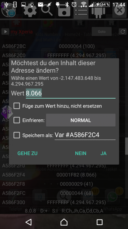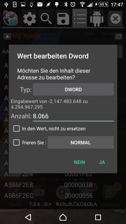 when I go to a certain adress and want to change the value, I cant choose the type (Dword, Float...) anymore, in which I wanna enter the new value anymore.