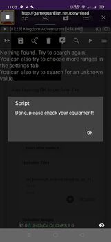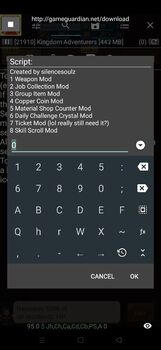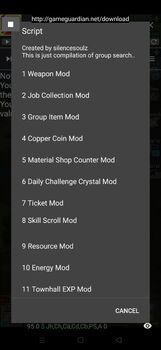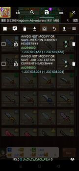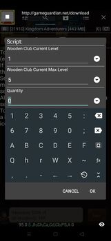This script is a compilation of group search I made, based from this group's conversation and from myself. Born from my laziness of searching things over and over again, I decided to compile it using a script XD. Just run the script, pick the menu, respond any question that popped out, and finally wait and let my script do the job automatically for you Disclaimers : - I take no responsibility for anything happen to your device and/or your account as a result from using my script, so kindly DO IT WITH YOUR OWN RISK. - This script need to store indexing data performed by any group search made, so kindly review every permission for GameGuardian installed on your device especially read and write storage. - I made this script using GameGuardian v95.0, it may or may not work on newer version (PM me or quote my post if it doesn't support) How to : - Download my script (attached below) to your device. Run script from GameGuardian by clicking triangle icon on the right side of magnify icon (the icon you usually do search value) Features : - As listed in the Menu Just try it one by one and see it for yourself XD - At the first time game restarts, most of all menu will performed group search 2 times, one is for searching the value of -2000000000~-1000000000 (I called this header ID), another is for collecting its data range based on the header ID and save it for the next time execution as long as the game didn't restart. when it tells you to check your game, please check it and see for the changes. - If you check saved list (floppy disk icon on top), you may see this : As it says, please not to remove it. Doing so will perform group search again on the respective menu and it'll take some more time. Special notes : - If you placed another copper coin box after run my script option 4, you'll need to delete copper coin current header in saved list so my script will re-collect your copper coin box data - If you placed another townhall after run my script option 10 and/or 11, you'll need to delete townhall exp current header and energy current header in saved list so my script will re-collect your current exp and energy in each townhall - If you placed another townhall after run my script option 9, you'll need to delete resource current header in saved list, re-run option 9 with no modified resource, when it's done delete again in saved list, then re-run option 9 with modified resource using my script. this seems complicated, but I'll try simplified it later. - You'll need to delete daily challenge crystal header when server time restarts (you can see server time in briefing room, on the bottom right side) Have fun net.kairosoft.android.kingdom_en_v1b.lua