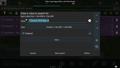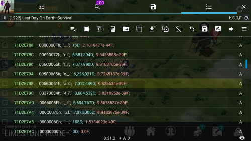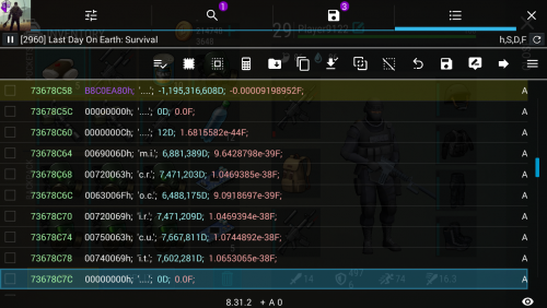 Watch video carefully bro. i said you will see group value It about -1,xxx,xxx,xxx D 0D partvalueD And in your pic is -1,xxx,xxx,xxxD 0D 723D 27D _______________________________________________ added 3 minutes later Read this: https://gameguardian.net/forum/topic/17283-last-day-on-earth-survival/?do=findComment&comment=59745