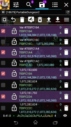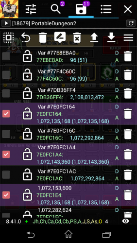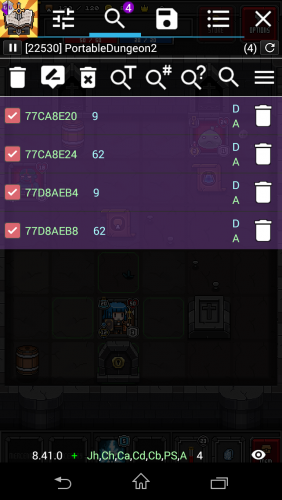 I have been using GG on some easy, small apps for about two weeks now just to learn how it works. A few days ago I tried editing my gold in PD (Portable Dungeon II). First I used the exact search and the encrypted exact search to find the gold. After doing that I end up with these values;
