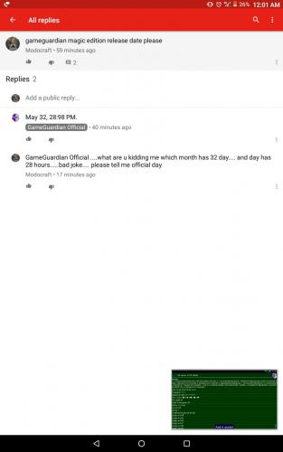 I had downloaded signed versions(that u gave in above post) and I followed instructions you give and I have encountered with some issues and not working... I'm enclosed screenshot I'm tried both virtual spaces not worked anymore and I had tried to record logcat. And it says "logcat record error" on virtual space anymore out of virtualspaces I. E default launcher I'm able to record logcat I'm enclosed logcat hereGG_logcat_r8.56.0_10557_7.1.1_25.log Please help me to fix it and also reveal the gameguardian magic edition official release date please.......