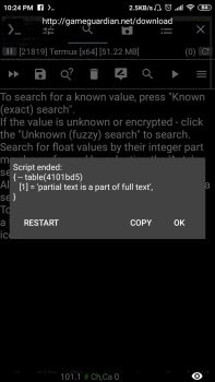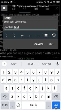 Hey @Enyby, could you please update these 2 functions: gg.prompt and gg.multiChoice? They are great for getting input from user, but it lacks a very important feature that still missing. For example, when I am still entering the prompt partially, sometimes I close GG to have a better visual on what the full input's gonna be. But here's the problem, as soon as I close GG, those partial inputs typed are gone (pressing non-OK). When I next open GG, I don't have programmatically ways to store previous input so that it can be used later on. Things also go the same for gg.multiChoice, but instead of prompts it is for menu list checkmarks. Do you think you can handle this in the near future? This is the best feature that I've been wanting to have in my scripts.